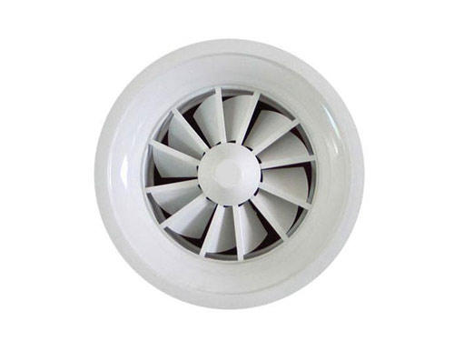 旋流风口是空调系统中的一个送风工具。在空调通风系统中可用作大风量,大温差送风以减少风口数量,安装在天花板或顶棚上,可用于3米以内低空间,也可用二种高度大面积送风,高度甚至可达10米以上。