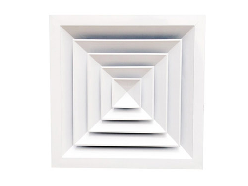 方形散流器是空调系统中常用的送风口、具有均匀散流特性及简洁美观的外形,可根据使用要求制成正方形或长方形,能配合天花板的装修要求。散流器的内芯部分可从外框拆离,方便安装及清洗。后面可配风口调节阀以控制调整风量。